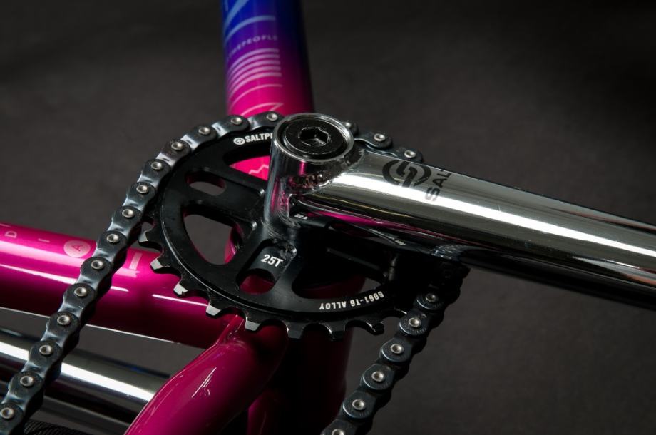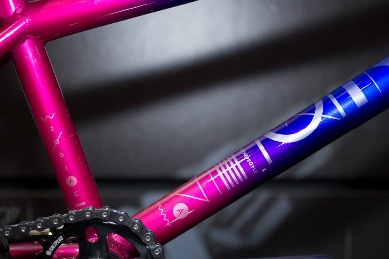 Frame 4130 full cromo, tapered butted tubing, int. chain tensioner