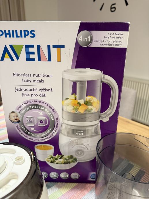Prodajem Avent kuhalo za hranu 4 in 1 koje može odmrzavati, kuhati na pari, miksati i sjeckati hranu. Prodajem sve u originalnoj kutiji i sve što je došlo u paketu pri kupovini. Izvrstna opcija za mame koje žele brzo i kvalitetno skuhati domaće obroke za svoje mališane.