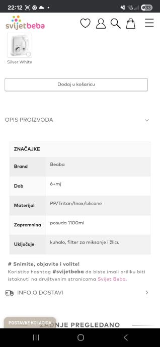 Prodaje se babycook uređaj korišten za jedno dijete u pripremi obroka.