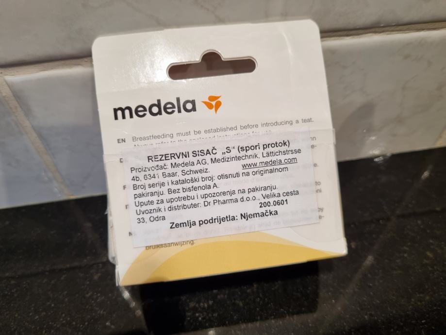Medela sisač veličine S (sporiji protok), 2 kom. Novo, nikad korišteno u originalnoj ambalaži.