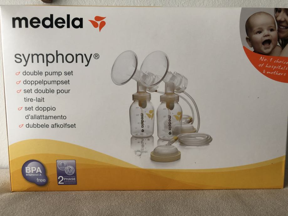 Set za električnu izdajalicu Medela Symphony. U originalnoj ambalaži. Izdajalica NIJE u setu, već samo nastavci potrebni za korištenje električne izdajalice Medela Symphony.