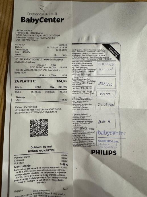 Prodajem Philips Avent duplu izdajalicu dobivenu na poklon.