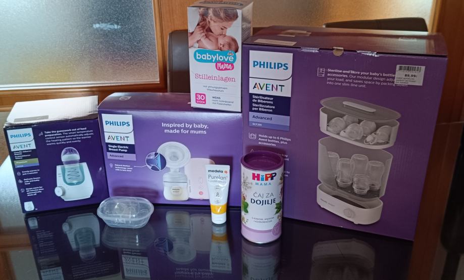Pumpica je korištena svega nekoliko puta, sterilizator i grijač malo duže, ali generalno kao novo.