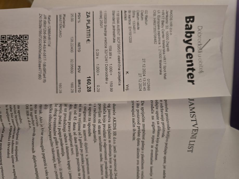 Kupljena u Baby centru i samo jednom probana, sterilizirana i zapakirana.