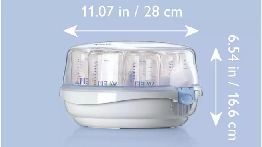 Jednostavno dodajte vodu, napunite s do 6 bočica i stavite u mikrovalnu pećnicu na samo 2 minute.