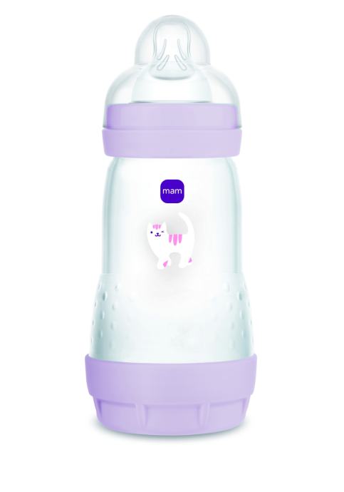 Plastična bočica s Anti-Colic ventilom koji smanjuje gutanje zraka i pomaže u sprječavanju kolika.Opremljena je MAM SkinSoft® silikonskom dudom za prirodan osjećaj sisanja.Široki otvor omogućuje jednostavno punjenje i čišćenje.Bez BPA, pogodna od rođenja.