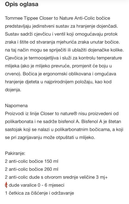 Prodajemo set potpuno novih, neotvorenih bočica za bebe u različitim razvojnim fazama, od 0+ pa do 3+ mjeseca, sa različitim veličinama dudica i samih bočica. Detaljniji opis paketa nalazi se na kraju galerije. Kupljeno 2022. godine