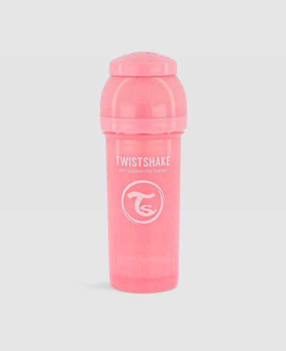 Twistshake je poznat švedski brand za dječje bočice, koje su inovativne, jednostavne i sigurne za upotrijebu (BPA, BPF i BPS free), i vrlo jednostavne za čiščenje. Bočice su prikladne već od rođenja nadalje, kasnije, kada beba naraste i traži veći protok sadržaja možete dokupiti nove sisaće sa vecim rupicama. Svi dijelovi bočica Twistshake Anti Colic su kompatibilni i mogu se kombinirati prema vašem izboru.Twistshake bočica za bebe je idealna za upotrebu u kombinaciji s redovitim dojenjem. Svaka Twistshake bočica sadrži praktični spremnik i mrežu za lakše i učinkovitije miješanje. Jedinstveni sustav TwistFlow aktivno smanjuje kolike i osigurava jednoličan protok sadržaja u bočici. Bočica ima širok vrat, što je čini lakom za čišćenje. Oblik bočice je dizajniran da olakšava držanje i održavanje topline.