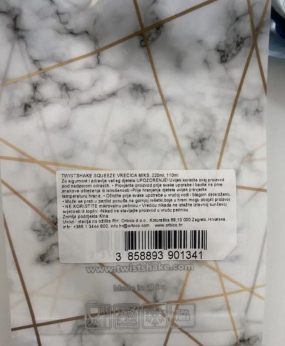 Značajke: Ne sadrži BPA – siguran proizvod za vas i vaše dijete. Višekratne punjive vrećice– ekološki prihvatljive, višekratne vrećice. Sigurno za pranje u perilici posuđa – izvrsno za gornju košaru perilice posuđa. Dvostruki zatvarač Ziplock – jamči da sadržaj ne iscuri u vašu torbu. Sigurno za uporabu u zamrzivaču – uštedite vrijeme praveći veće količine odjedanput za zamrzavanje u punjive vrećice koje su spremne kada ih trebate. Moderni dizajni – odaberite između 24 divna dizajna sa sljedećim motivima: voće, špekule, životinje i cvijeće. Veličina – ima zapreminu od 220 ml.