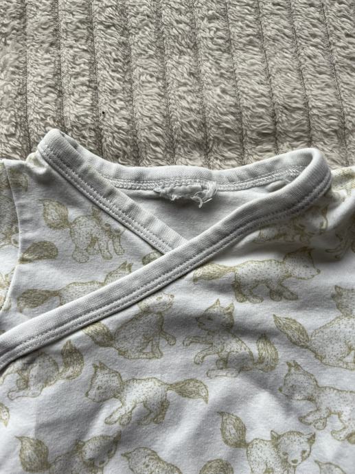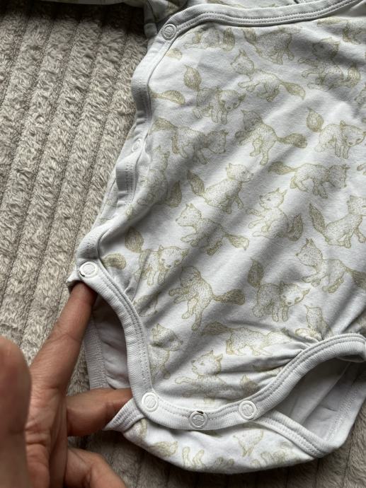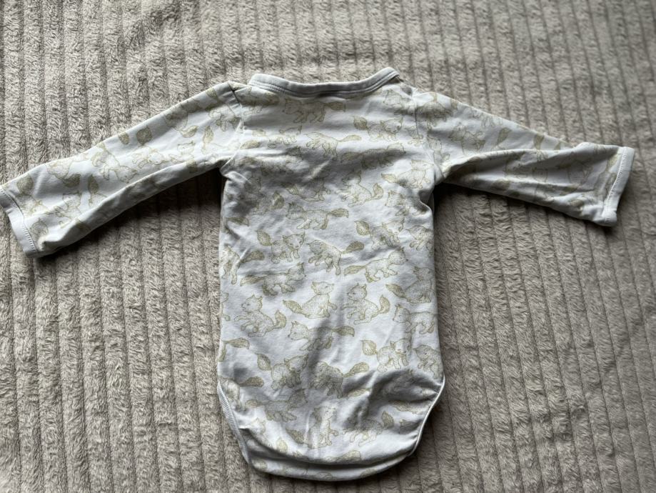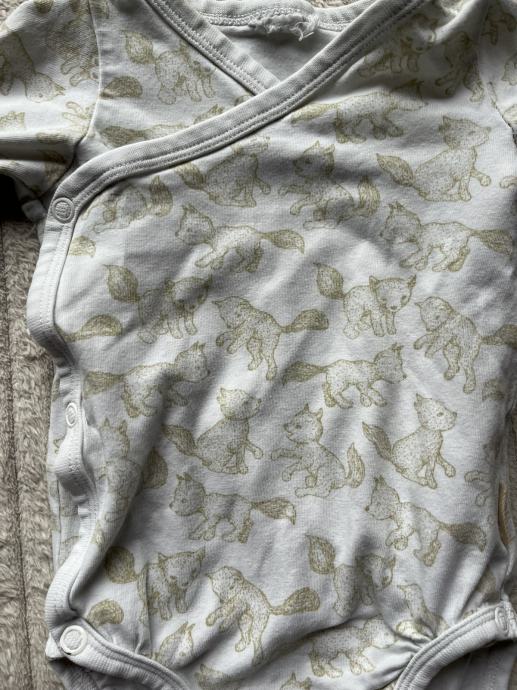 Bijeli bodi lisica 50 / 56, H&M. Odrezana je gornja etiketa ali odgovara za 50 / 56. ogrebana donja dva gumba, vidljivo sve na slikama.