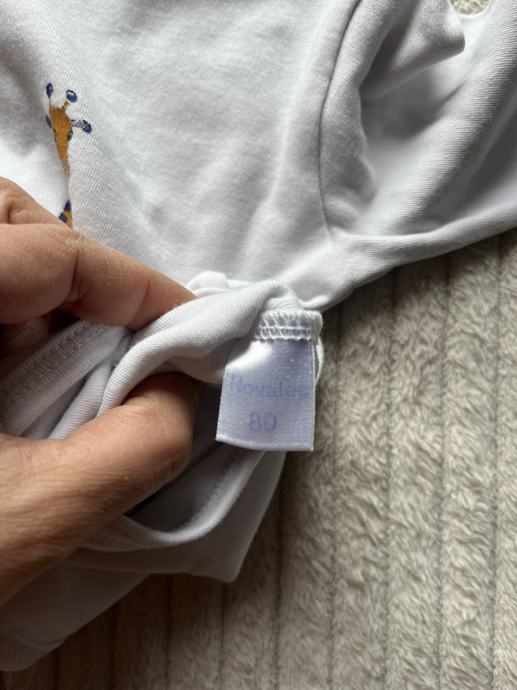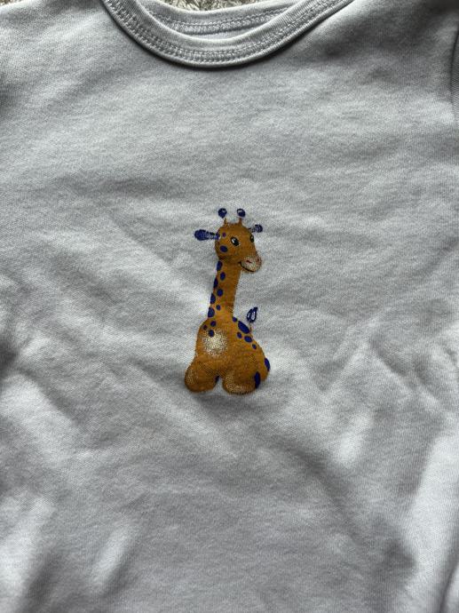 Bijeli bodi žirafa 74 / 80, Novalac. Deklariran kao 80, nošen na 74.