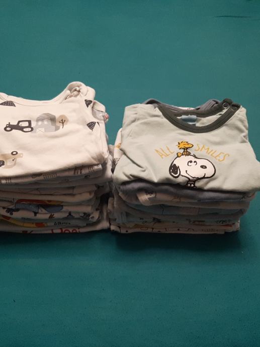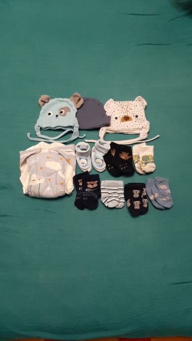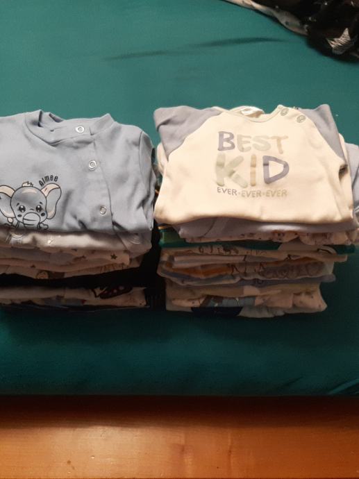 23 kompleta,28 bodija,8 majca,6 hlača i nešto kapa i čarapa za dječake.