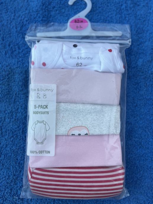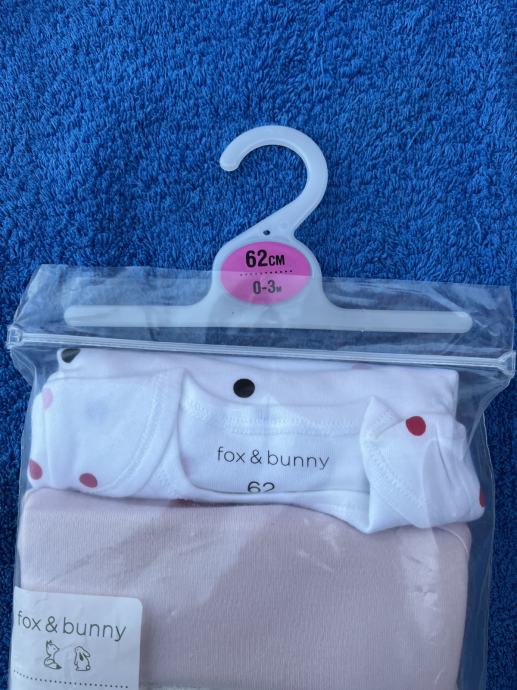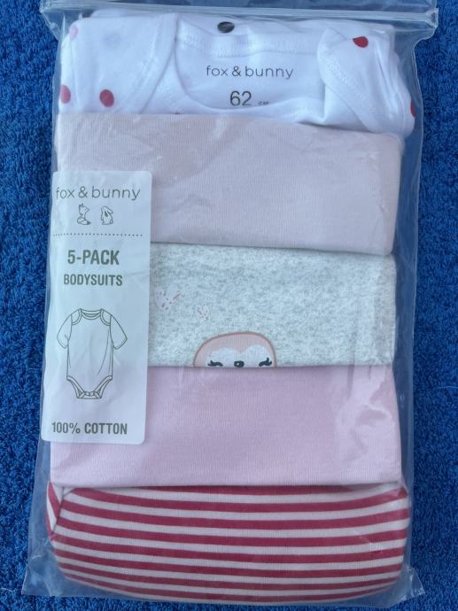 Set od 5 bodija kratkih rukava 62, Fox & Bunny. Novo