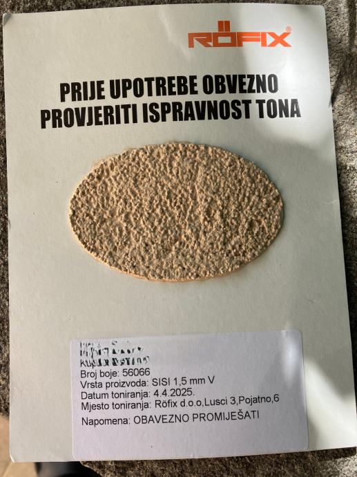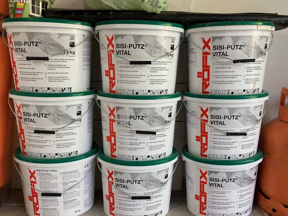Prodajem ROFIX, završnu silikonsku boju za fasadu, Broj boje je 56066, svjetlo smeđa. Količina 8x25 kg.