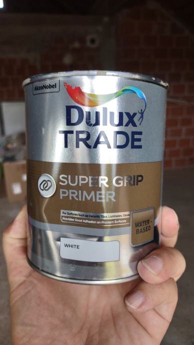 Dulux Trade Super Grip Primer, predpremaz na bazi vode, bijeli, idealno za keramičke pločice, laminat i staklo. Sadržaj: malo manje od litre.