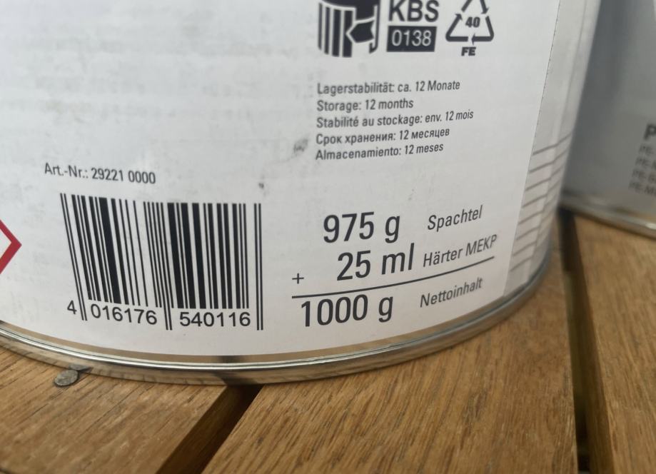 1kg Mipa Kit + Harter + 1L Filera + Harter + 300ml razrijeđivača = 50 eura