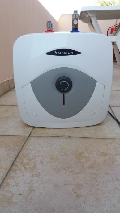 Električni bojler Ariston 10 L,1,2 kW, 8 bara, montaža ispod sudopera, termoregulacija i sigurnosni ventil.