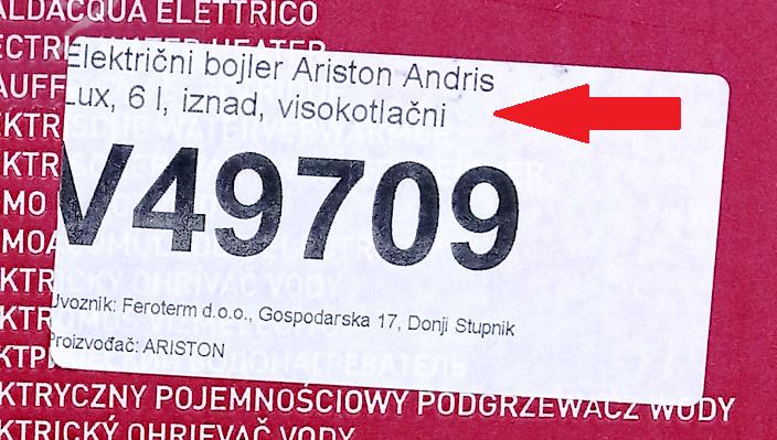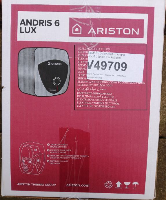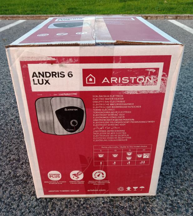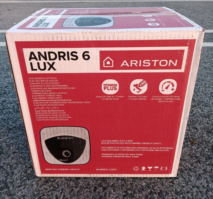 - električni bojler Ariston Andris Lux, 6 litara, iznad, visokotlačni, 1500 W, novo