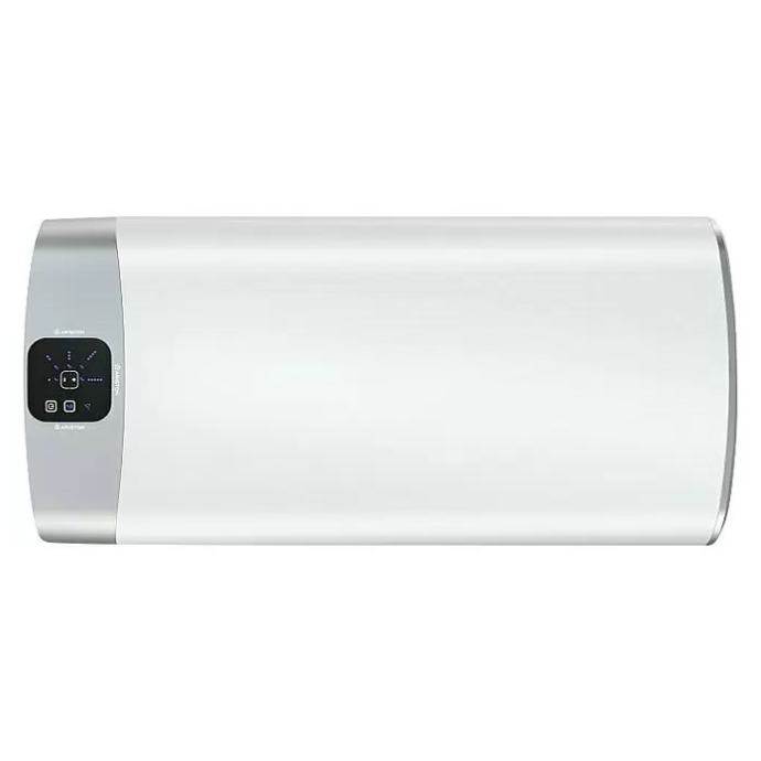 Ariston Velis EVO 100 zidni električni bojler, ugradnja vertikalno ili horizontalno, kapaciteta 100l. Vrijeme grijanja (T=45°C): 3,42h, maksimalni radni tlak: 8 bara, maksimalna radna temperatura: 80°C, zaštita IPX4. Digitalna regulacija temperature, NCT senzori temperature visoke preciznosti, ekološka funkcija ECO EVO, ekološka poliuretanska izolacija, unutarnji spremnik od titanija i ispitan pri 16 bara, dvije magnezijske anode, dvije prirubnice s 5 vijaka, sigurnosni tlačni ventil ispitan pri 8 bara, LED zaslon, dubok samo 27 cm.