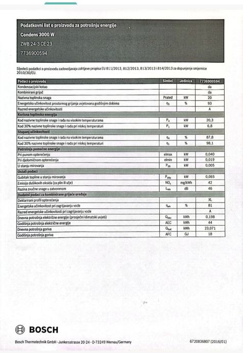 Bosch plinski fasadni kondezacijski bojler 24 kw za sanitarnu vodu i centralno grijanje star 7 godina , posljednji servis 2020 god.