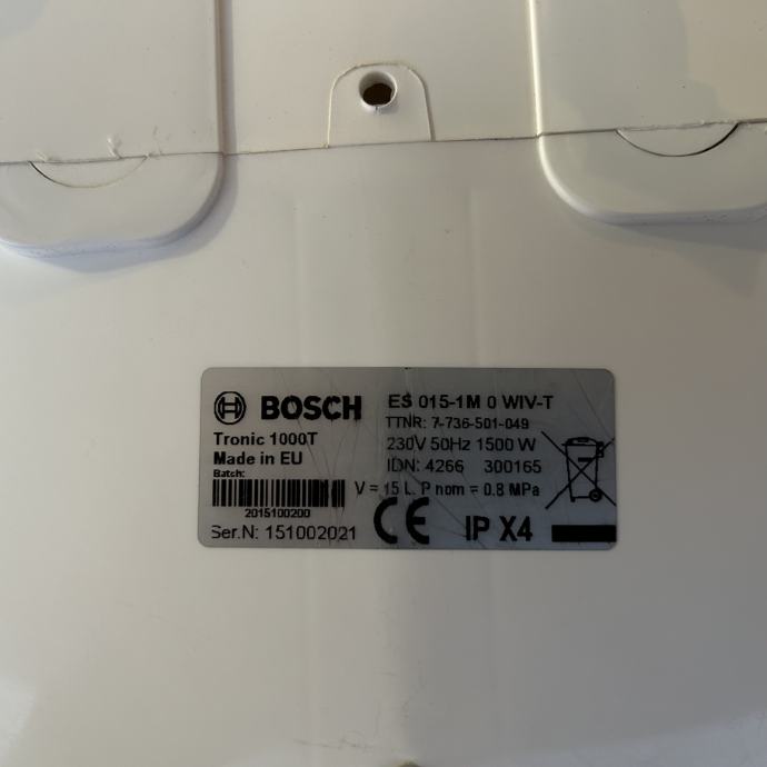 Prodajem Bosch Tronic 1000T električni akumulacijski bojler zapremine 15 litara.