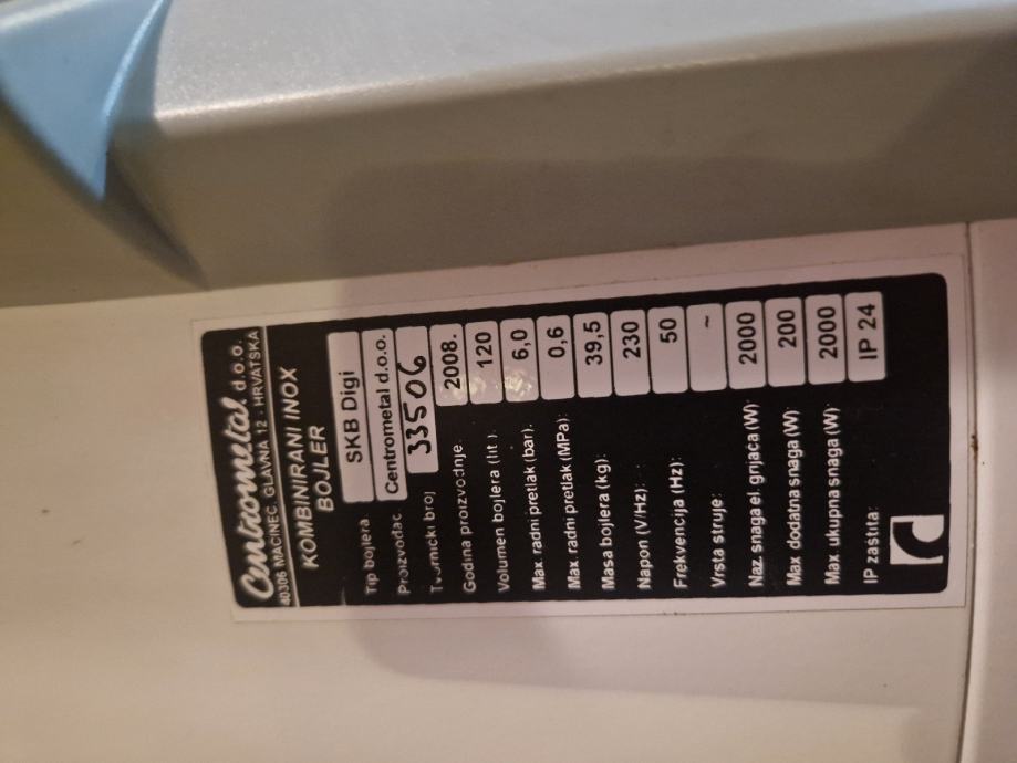 Prodajem Centrometal kombinirani spremnik tople vode od 120 litara,spremnik je izrađen od inoxa,znaci duži vijek trajanja,može biti voda grijana na struju ili preko centralnog grijanja,spremnik je bio u vikend kući i radio samo na struju,samim time nije puno radio tako da je gotovo kao nov,radi preuređenja i drugačijeg načina grijanja tople vode prodajemo spremnik.