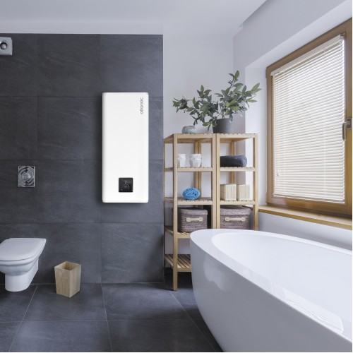 Atlantic Vertigo Steatite Essential električni akumulacijski bojler opremljen je Steatite tehnologijom s dvostrukim spremnikom i visoko učinkovitim dovodom vode. Njegov vrhunski ravni dizajn i jednostavna ugradnja u više položaja savršeni su za domove bilo koje veličine,pogotovo za male prostore. Ušteda prostora uz ravni dizajn (dubina manja od 30 cm). Jednostavna instalacija zahvaljujući ugradnji uviše pozicija: okomiti ili vodoravni položaj. Uz dva spremnika voda se zagrijava brže, a topla kupka je spremna za cca 30 minuta. Opremljen je dvostrukim Steatite grijačima ( suhi keramički grijači) koji su prilagođeni visoko mineraliziranoj , tvrdoj ili desaliniziranoj vodi. Ima IP 24 električnu zaštitu.