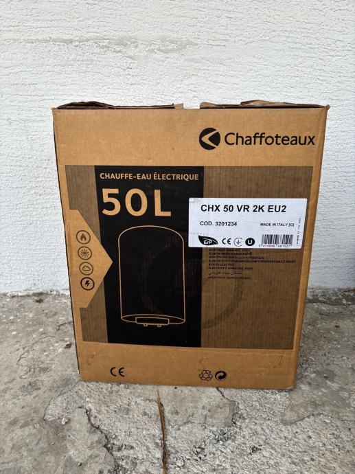 Prodajem novi zapakirani Električni bojler Chaffoteaux 50 L idealan je za opskrbu toplom vodom. Bojler se postavlja vertikalno izravno na zid, a alternativno je moguće koristiti stativ s držačem prilagođenim ovom modelu. Spremnik bojlera izrađen je od čelika sa posebnim titanijskim emajlom i testiran je na tlak od 16 bara.