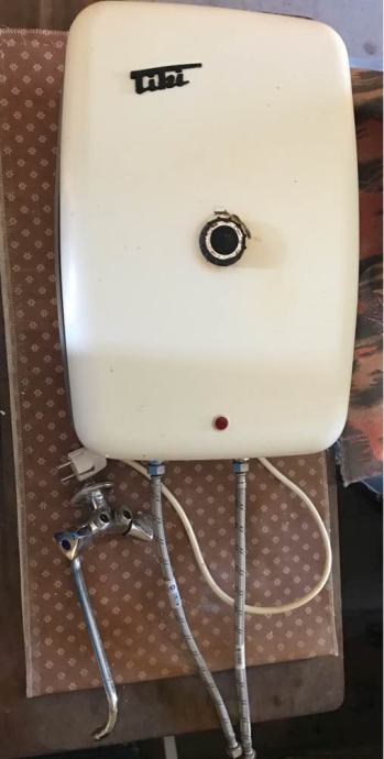 Električni bojler Gorenje Tiki, gornja montaža s cijevima za spajanje i kuhinjskom slavinom - mješalicom za vodu (gotovo nova). Zapremnina 10L.