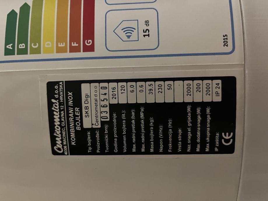 Električni kombinirani bojler Centrometal SKB Digi 120L - desni, potpuno ispravan. Moguća dostava u Zagreb (Arena centar).