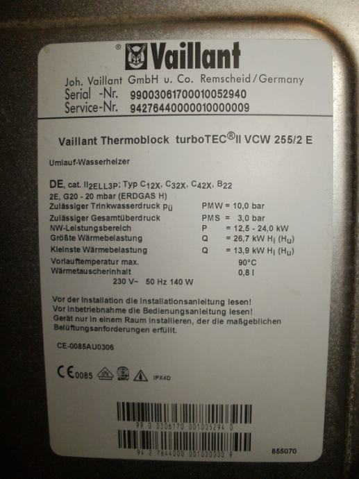 Prodaje se fasadni bojler Vaillant Thermoblock turboTEC II, snage 24 kW, za centralno grijanje i toplu vodu. Kupljen u Njemačkoj, redovito servisiran. Skinut na proljeće jer smo proširili kuću pa smo kupili novi bojler snage 28 kW. Može se iskoristiti za dijelove ili ponovno postaviti , ali prije potreban servis (nije radio od prosle zime).