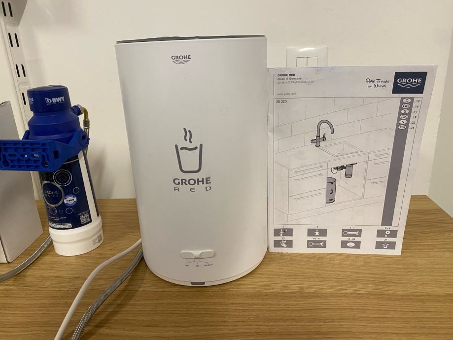 Grohe Red duo slavina i bojler za instant kipuću vodu od 100 C na kuhinjskoj slavini za montazu ispod radne ploce / sudopera kuhinje . Trenutno daje vodu od 100 c