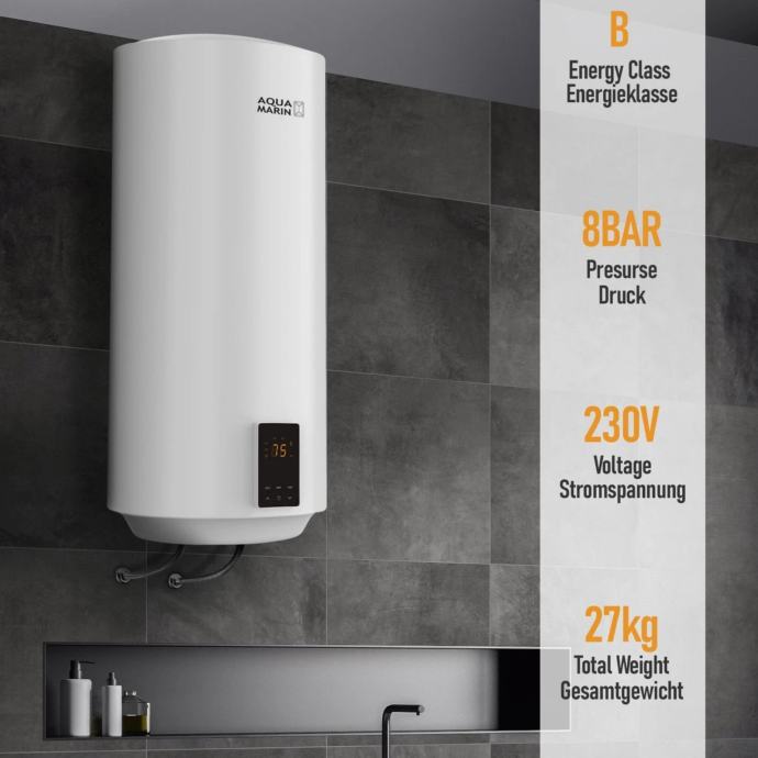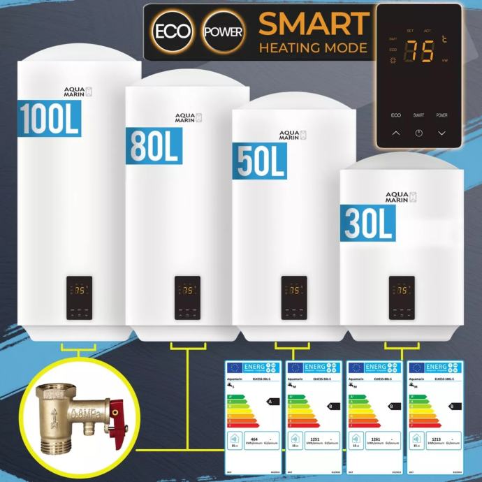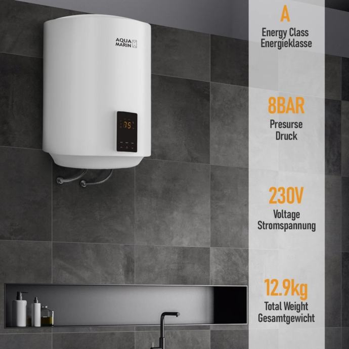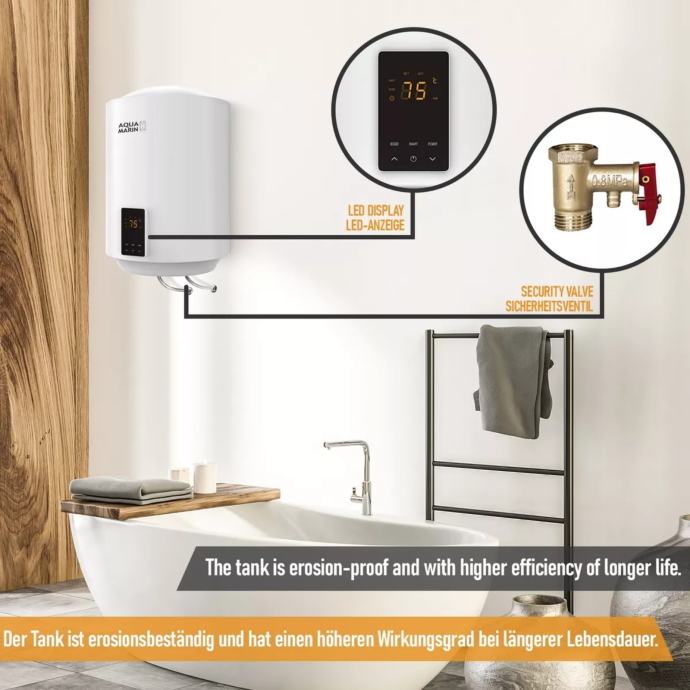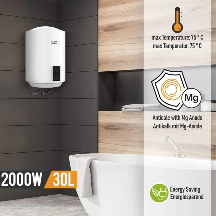 Ovaj svestrani kućanski aparat na električni pogon dizajniran je za funkcionalnost i izdržljivost. Naš spremnik za toplu vodu ima spremnik od emajliranog čelika s premazom protiv kamenca i magnezijevom anodom kako bi se osigurala otpornost na koroziju i dug vijek trajanja proizvoda. Opremljen je podesivim termostatom koji vam omogućuje zagrijavanje vode do 75°C, kao i sigurnosnim ventilom i svim potrebnim materijalima za pričvršćivanje. Ovaj pametni model dostupan je u različitim kapacitetima, tako da ćete sigurno pronaći onaj koji zadovoljava vaše potrebe za toplom vodom.