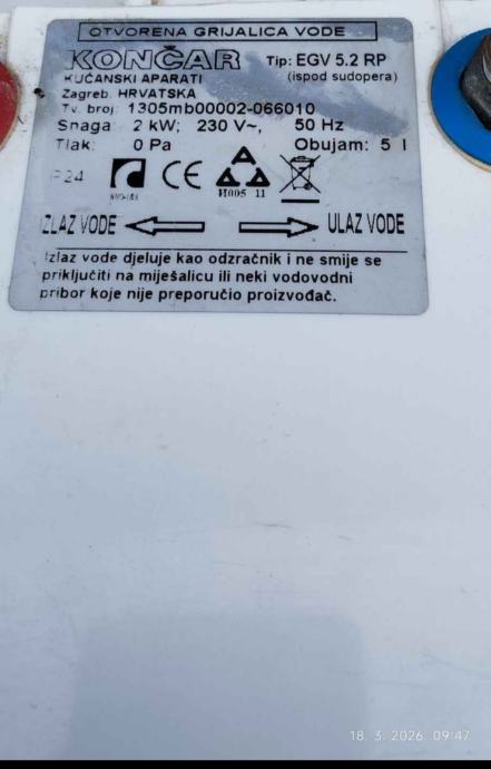Zapremina 5 litara, podpultni ,niskotlačni.