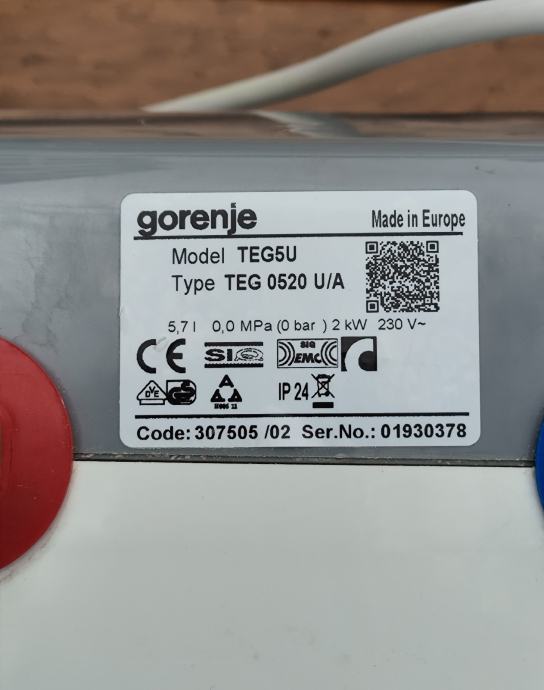 Bojler Gorenje niskotlačni 5,7 lit. podpultno i natpuntno postavljanje