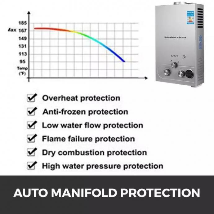 36KW PLINSKI PROTOĆNI BOJLER ZA GRIJANJE VODE NA PLIN BOCU BUTAN-PROPAN ILI UNP