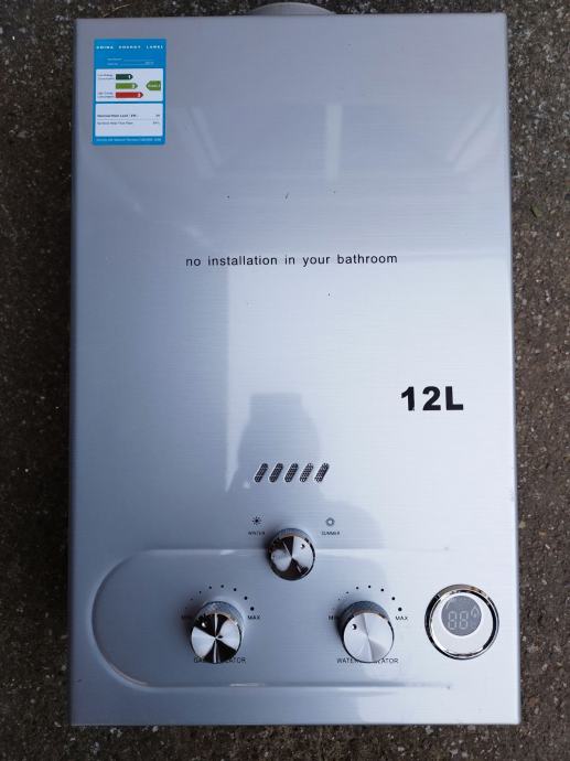 Prodaje se plinski bojler, novi i ne korišten (vidljivo iz slika), na bocu. 12 litara zapremnine, za grijanje grijanje vode na plin.