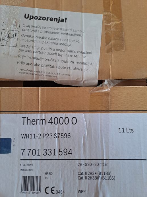 Prodajem plinski bojler za sanitarnu vodu Bosch Therm 4000, rabljen, star nekoliko godina, potpuno ispravan i funkcionalan, cijena 80€,
