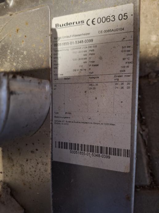 Prodajem ispravan plinski bojler marke Budersu tip LOGAMAX U124
