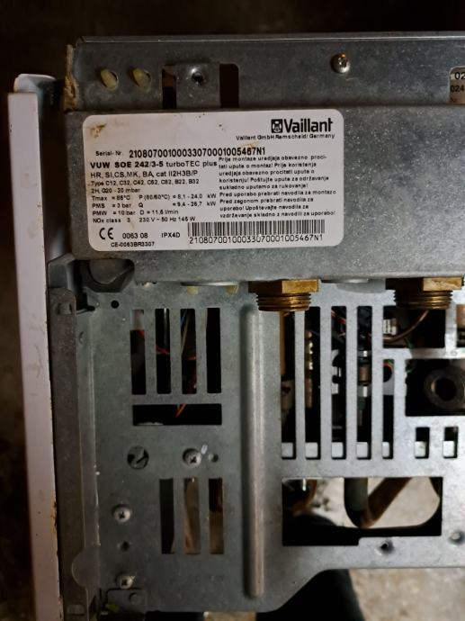 Prodajem bojler za centralno grijanje i toplu vodu Vaillant VUW 242/3-5 U solidnom stanju, bojler je uredno servisiran te je ociscen kemijski od kamenca isproban te je ispravan, bojler je fasadni