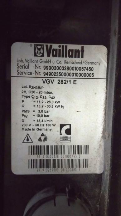 Plinski kombi bojler fasadni Vaillant VGV 282/1, 28kW, malo korišten, stoji već duže vrijeme, za grijanje i pripremu tople vode.