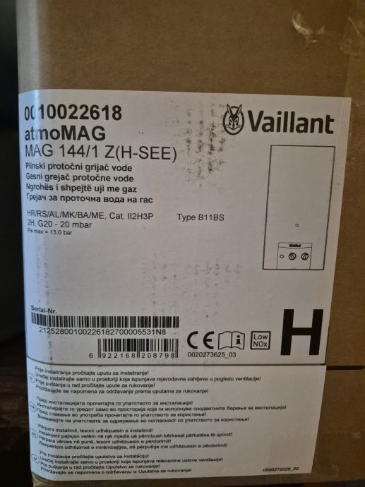 Prodajem novi ne korišteni plinski grijač vode (bojler) MAG 144/1 valilant . Nov ne korišten greškom kupljen 19.01.2026. U ivaz-u.