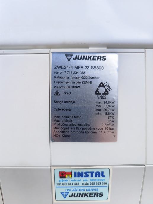 Prodajemo 20 godina star plinski kombi bojler marke Junkers 24 kW, s neispravnom ekspanzijskom posudom. Sve drugo ispravno.