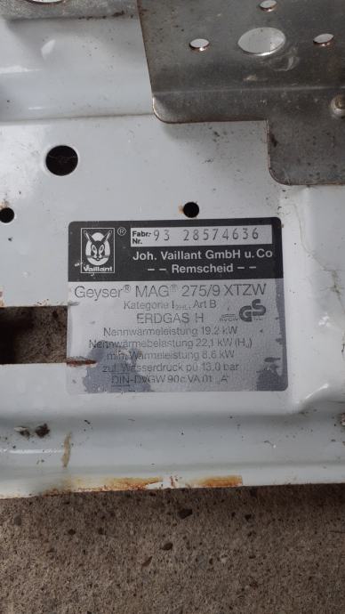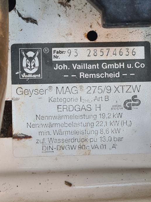 Dijelovi za protočni bojler Vaillant Geyser MAG 275/9 XTZW 19,2 kW 22,1 KW, korišten.