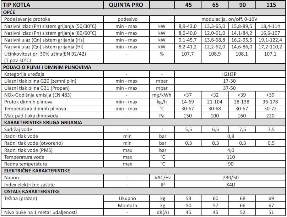 Do 109% na Hi (98% na Hs) pri ulazu od 30% i povratnoj temperaturi od 30°C