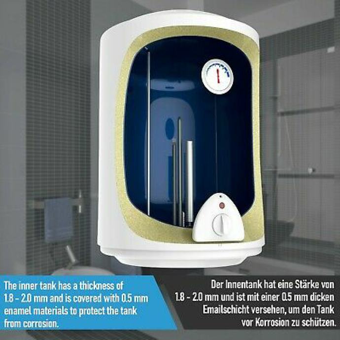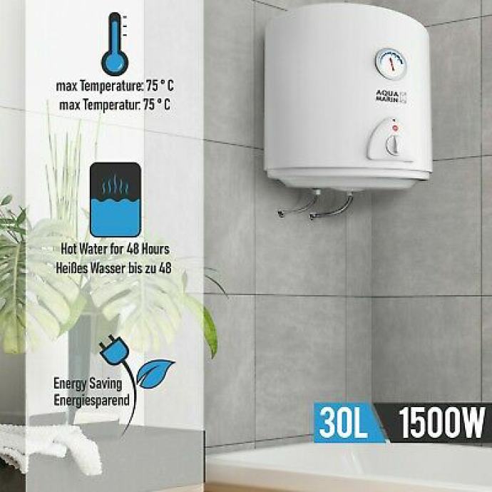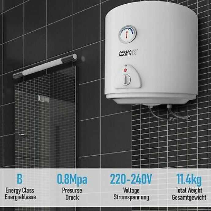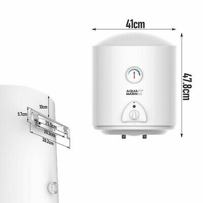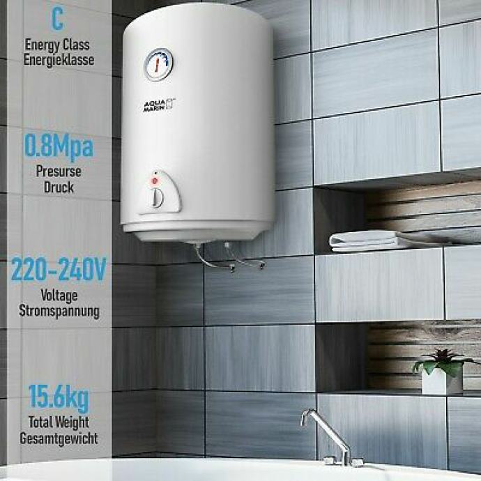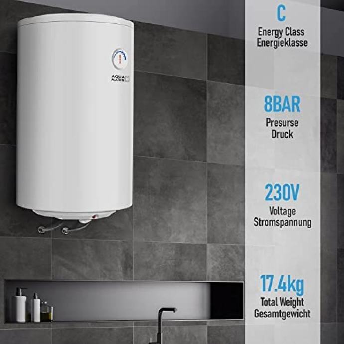 Aquamarin® električni spremnici tople vode praktičan su i ekonomičan dodatak vašoj kupaonici - ovaj bojler zagrijava vodu do 75°C i održava temperaturu stabilnom dva dana, tako da nikada nećete ostati bez tople vode. Unutrašnjost spremnika prekrivena je zaštitnim slojem emajla koji štiti vaš uređaj od korozije i osigurava duži vijek trajanja.