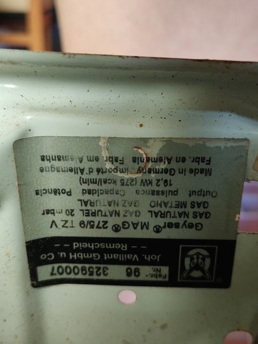 Vaillant protočni bojler dimnjak, za dijelove. Model Geyser MAG 275/9