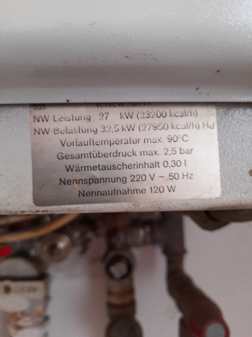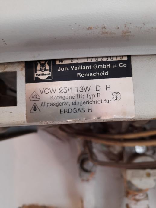 VAILLANT KOMBI BOJLER VCW 25/1 T3W D H, na dimnjak. Stari ali kvalitetan bojler za centralno grijanje i pripremu tople vode. Vrlo pouzdan i snažan (27KW). Grijao je stan od 160 m2u centru Zagreba. Još je na zidu, ali je nakon potresa van funkcije. Uskoro počinje adaptacija stana, pa moramo staviti kondenzacijski bojler i provesti novi dimnjak. Prodajemo ga za 120 Eura Tel 091/584-7859