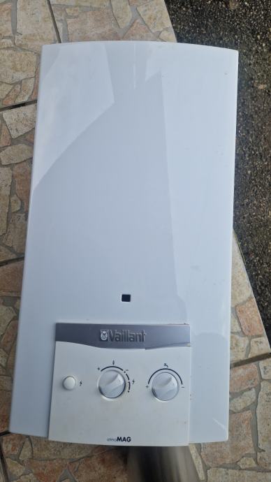 Prodaje se rabljeni plinski protočni bojler Vaillant za toplu vodu na dimnjak. Spremnik je 11 l.