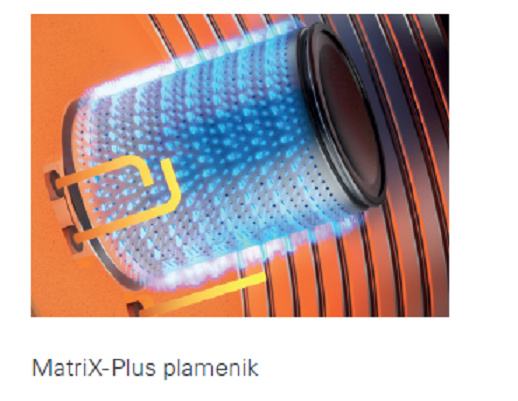 - cilindrični inteligentni plamenik Matrix sa automatskim podešavanjem snage od 11 do 25 kW ovisno o trenutnoj potrebi zagrijavanja prostora !!! Ova inteligentna regulacija donosi do 10% dodatne uštede i produžuje vijek trajanja uređaja.